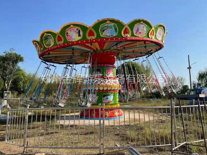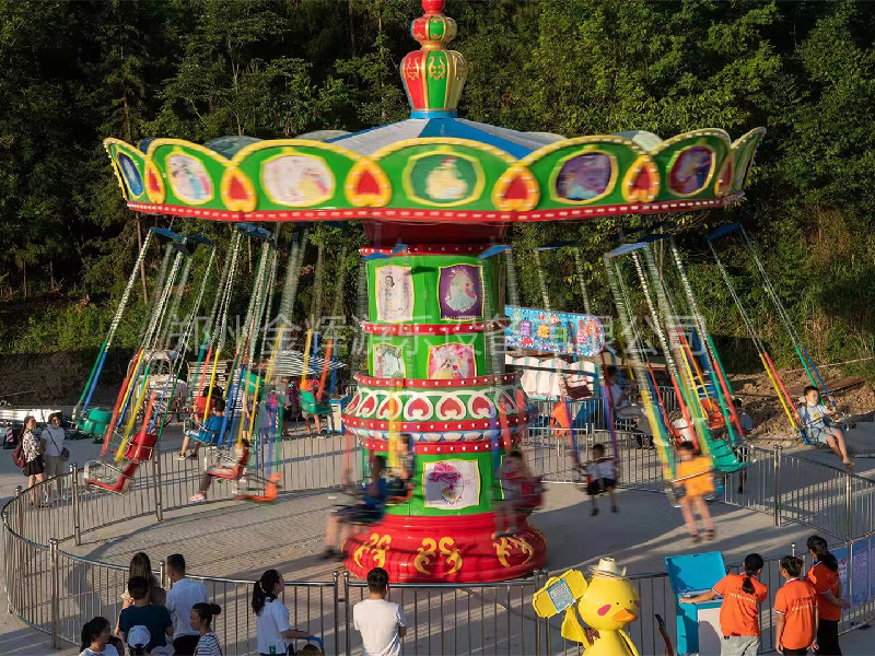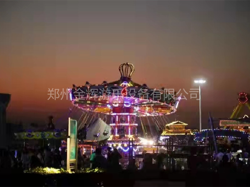 旋轉(zhuǎn)飛椅是項(xiàng)十分受大眾喜歡的游樂(lè)設(shè)施。颶風(fēng)飛椅像是把大傘(或能搖頭的大傘)下吊著很多把靚麗 的吊椅,在大傘轉(zhuǎn)動(dòng)(或搖頭)時(shí),吊椅在空中波浪起伏地旋轉(zhuǎn)飛舞。設(shè)備轉(zhuǎn)動(dòng)時(shí),乘坐在吊椅上的乘客猶如在藍(lán)天飛舞,體驗(yàn)刺激收獲快樂(lè)。颶風(fēng)飛椅是集旋轉(zhuǎn)、升降、變傾角等多種運(yùn)動(dòng)形式于體的大型飛行塔類(lèi)游藝機(jī)。當(dāng)傘形轉(zhuǎn)盤(pán)和中間轉(zhuǎn)臺(tái)反向旋轉(zhuǎn)啟動(dòng)時(shí),塔身徐徐上升,此時(shí)轉(zhuǎn)盤(pán)搖擺,飛椅呈波浪蕩漾狀,游客猶如在空中飛翔、飄蕩,海闊天空、驚心動(dòng)魄。設(shè)備巍峨雄偉,它柔和了絢麗的燈飾和七彩繽紛的圖案設(shè)計(jì),造型華麗,是目前游樂(lè)場(chǎng)上 漂亮 吸引人的游藝機(jī)之,也是標(biāo)準(zhǔn)的主題公園或現(xiàn)代游樂(lè)場(chǎng)的項(xiàng)目之。
