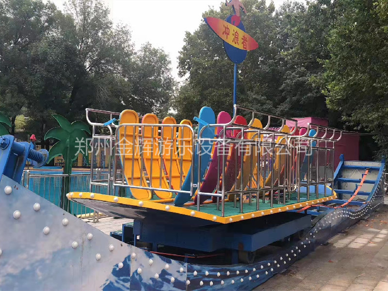 “沖浪者”又叫沖浪滑板,是款占地面積較大的新型軌道類游樂設(shè)備,它的亮點(diǎn)就是乘客都是站著乘坐的,前面有欄桿,后面有靠背,時(shí)可以扣緊帶,是非常好玩的游樂設(shè)備。它運(yùn)行起來除了順著軌道來回滑行,座艙也會(huì)進(jìn)行360度旋轉(zhuǎn),由于它的座艙是滑板樣式的,因此它的兩端非常刺激,就像是在沖浪樣涼爽。